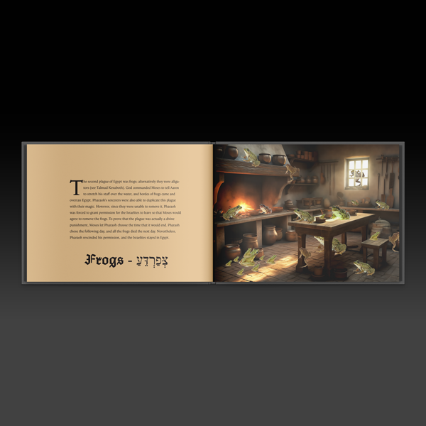 we created a children's pictorial book based on the 10 plagues in ancient Egypt. each page is beautifully designed intended to draw the children into the story